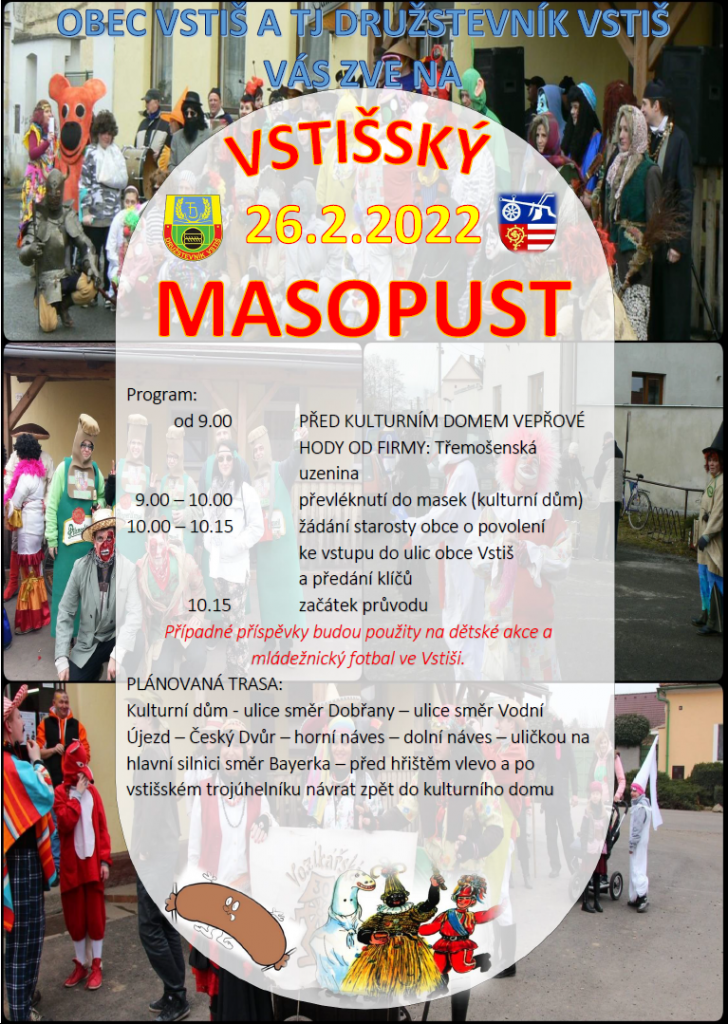 Sobota je ve znamení masopustních průvodů. Nejdříve začíná ten ve Vstiši, po něm ten u nás (přesně řečeno ten z Chotěšova do Mantova) a odpoledne v Hradci.